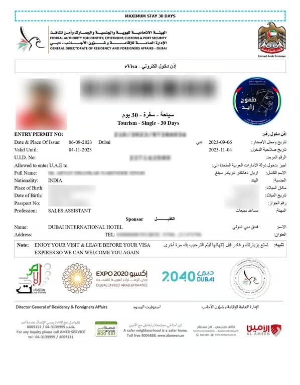 Step 5: Once your visa application is approved, your sponsor will send you the approved Dubai e-visa via mail.